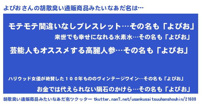 | ヘコむあだ名 | 『よぴふぇ~』『よぴお(小並感)』 |