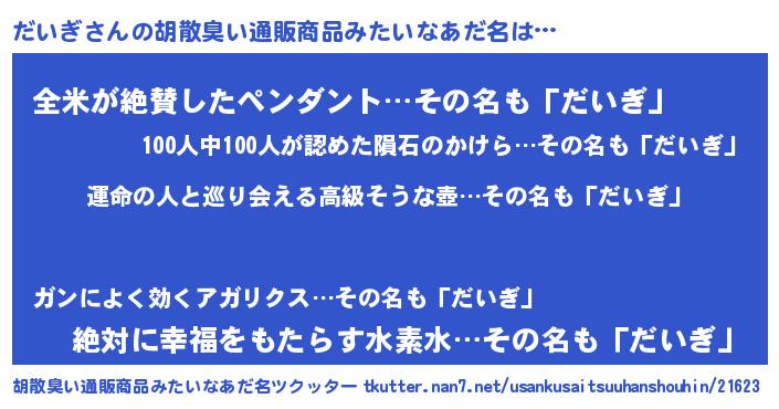 | ヘコむあだ名 | 『酢こんぶ』『だいを』 |