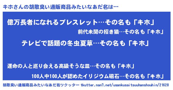 | 意味不明あだ名 | 『自称キホ』『ペロリンキホ』 |
