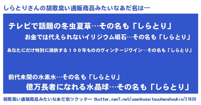 | ヘコむあだ名 | 『しらふぇ~』『しらとり(震え声)』 |