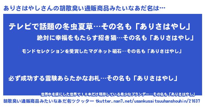 | ヒーロー風カッコイイあだ名 | 『慈愛の使者ありさはやし』 |