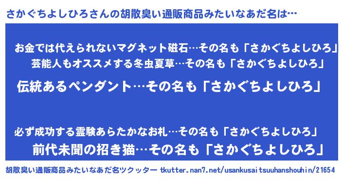 | 肩書あだ名 | 『さかぐちよしひろ塾長』 |