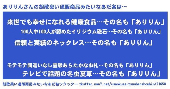 | 意味不明あだ名 | 『とにかく怪しいありりん』 |