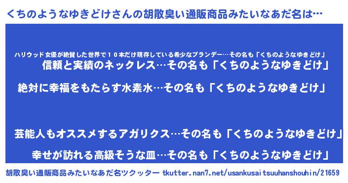 | 男性向けラノベタイトル風あだ名 | 『くちのようなゆきどけという概念が存在しない退屈な世界 』 |