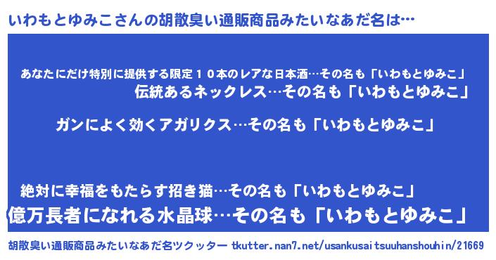 | 恥ずかしいあだ名 | 『イワモトユミコデラックス』『いわちん』 |