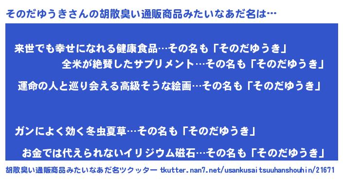 | ファンタジー風あだ名 | 『エターナルソノダユウキー』 |