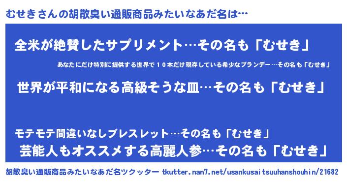 むせきさんの胡散臭い通販商品みたいなあだ名をツクッター!