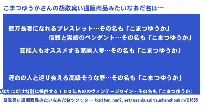 | 恥ずかしいあだ名 | 『コマツユウカデラックス』『こまっちょ』 |