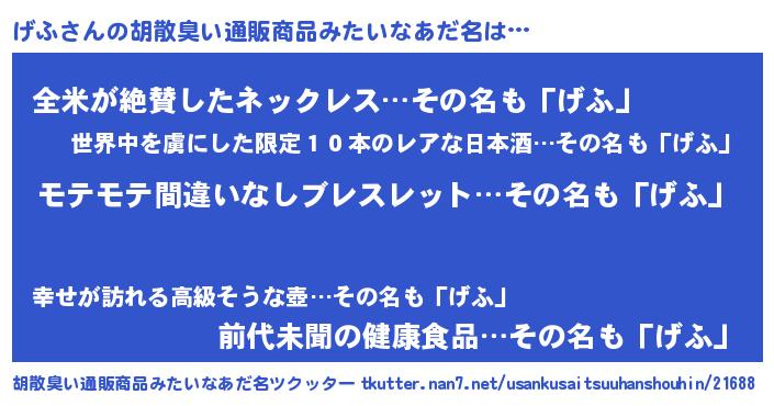 | 欧米人風あだ名 | 『マイケルげふ』『ウサインげふ』 |