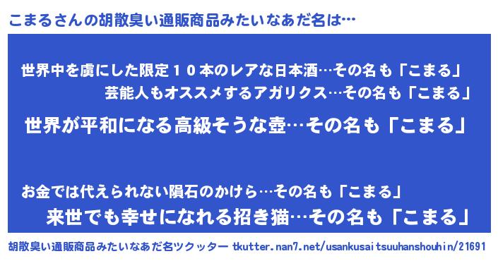 | 男性向けラノベタイトル風あだ名 | 『うちの娘の為ならば、俺はもしかしたらこまるも倒せるかもしれない。』 |