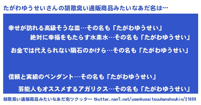 | ヒーロー風カッコイイあだ名 | 『愛の使者たがわゆうせい』 |