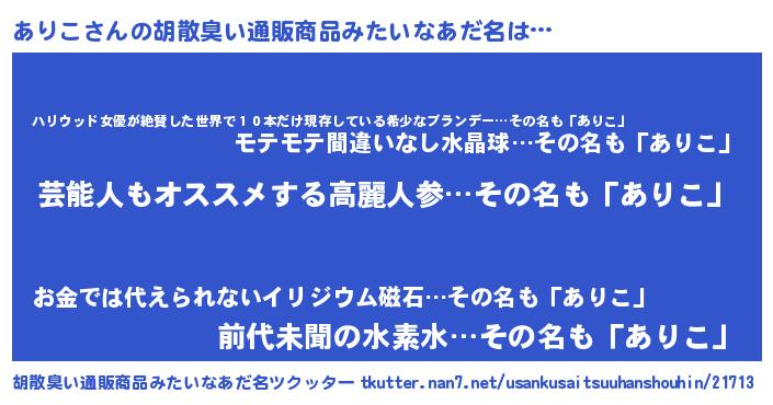 | 意味不明あだ名 | 『自称ありこ』『住所不定無職ありこ(47歳)』 |
