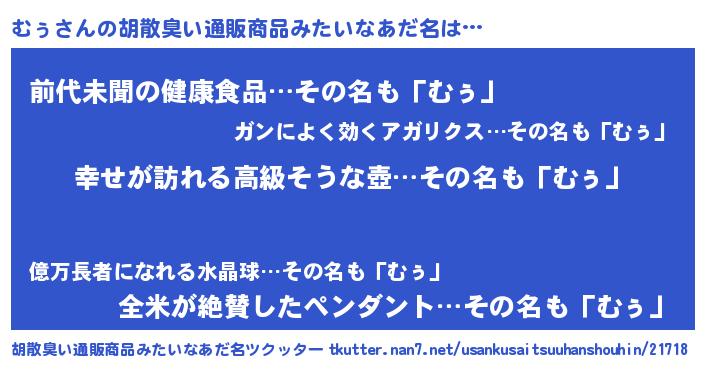 むぅさんの胡散臭い通販商品みたいなあだ名をツクッター!