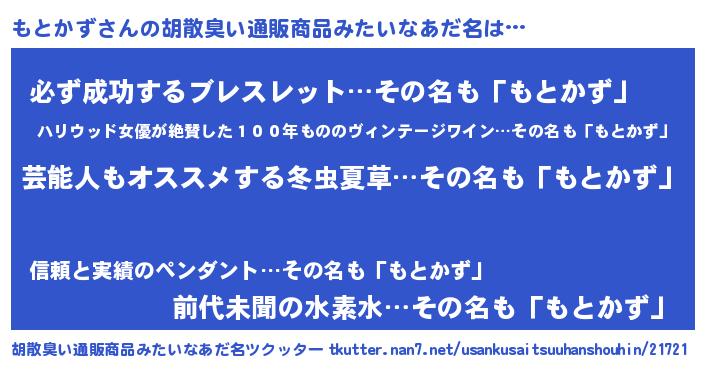 | ヘコむあだ名 | 『もとっふぃ~』『もとかず(笑)』 |