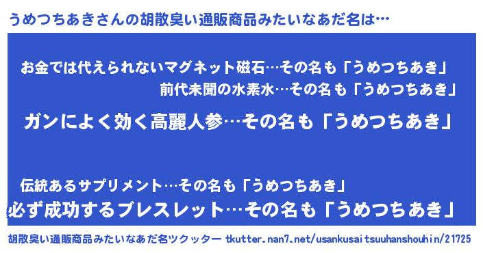 | 意味不明あだ名 | 『自称うめつちあき』 |