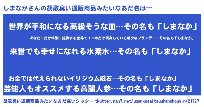 | 意味不明あだ名 | 『永久保存しまなか』『自称しまなか』 |