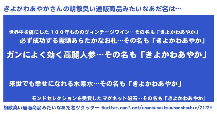 | 肩書あだ名 | 『きよかわあやか大佐』 |