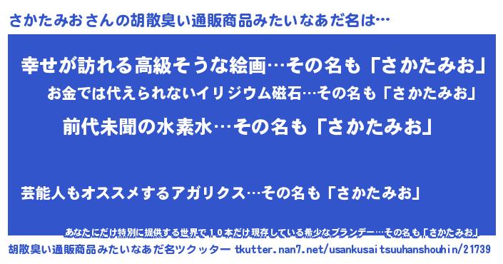 | ヘコむあだ名 | 『さかたみお(震え声)』『つくし』 |