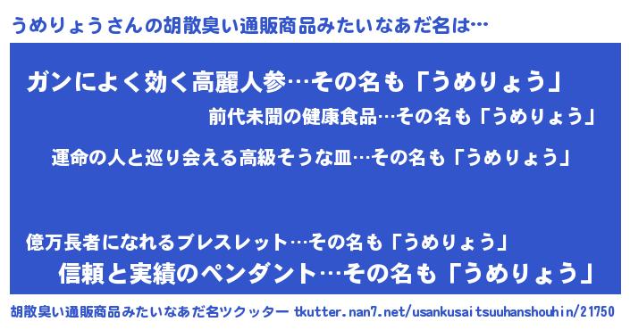 | 意味不明あだ名 | 『うめりょうフォーエバー』 |