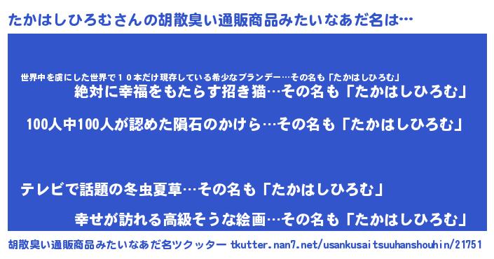 | ヘコむあだ名 | 『つくし』『たかはしひろむ(震え声)』 |