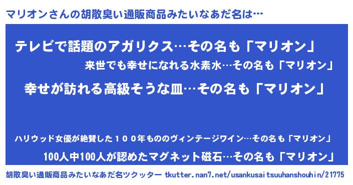 | 男性向けラノベタイトル風あだ名 | 『マリオンスレイヤー』 |