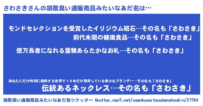 | 男性向けラノベタイトル風あだ名 | 『サワサキアートオンライン』 |