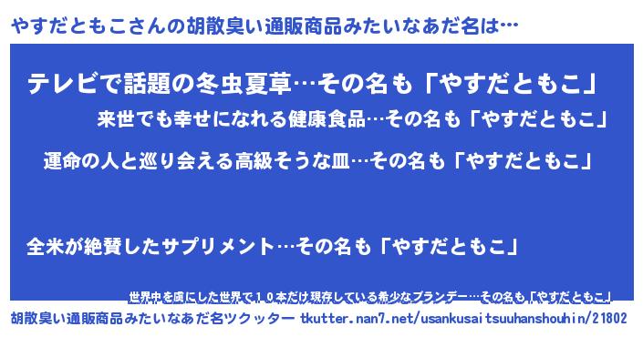 | 意味不明あだ名 | 『やすだともこフォーエバー』 |