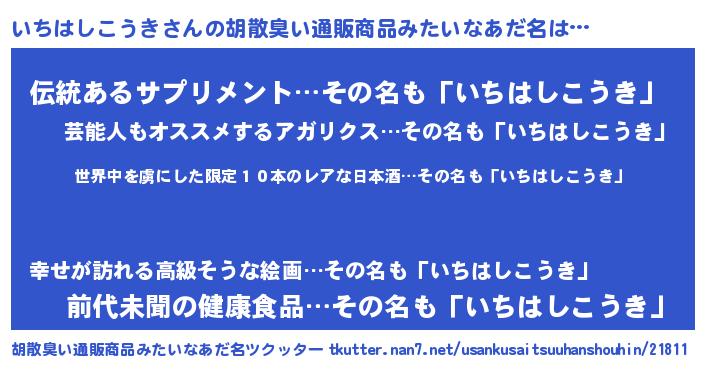 | 意味不明あだ名 | 『住所不定無職いちはしこうき(59歳)』 |