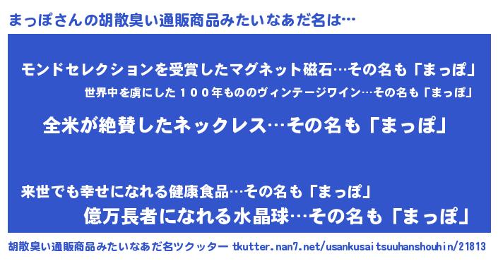 | 意味不明あだ名 | 『とにかく怪しいまっぽ』 |
