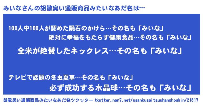 | 欧米人風あだ名 | 『トリンドルみいな』『ウサインみいな』 |