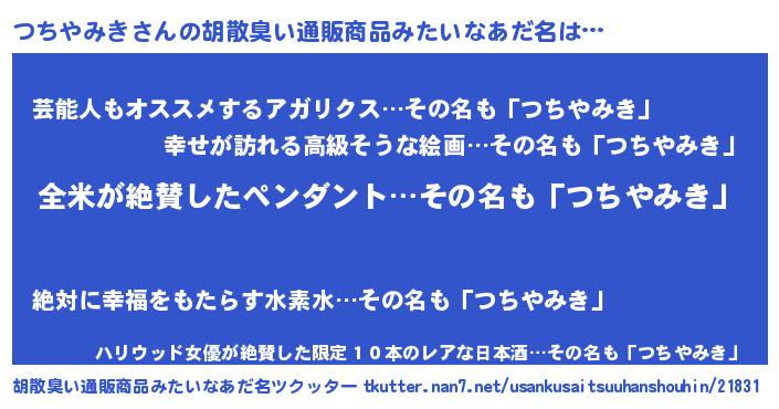 | 意味不明あだ名 | 『とにかく怪しいつちやみき』 |