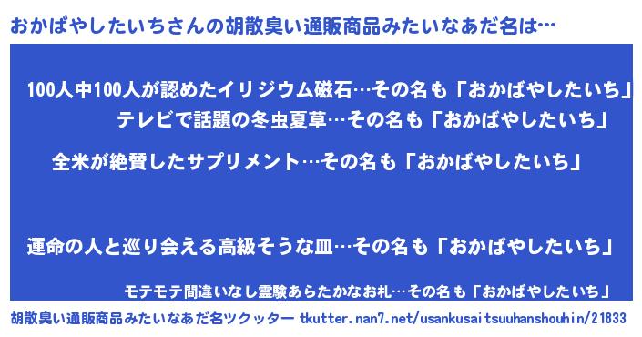 | 欧米人風あだ名 | 『ウサインおかばやしたいち』 |