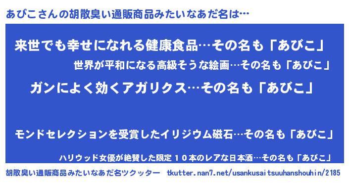 | 意味不明あだ名 | 『自称あびこ』『永久保存あびこ』 |