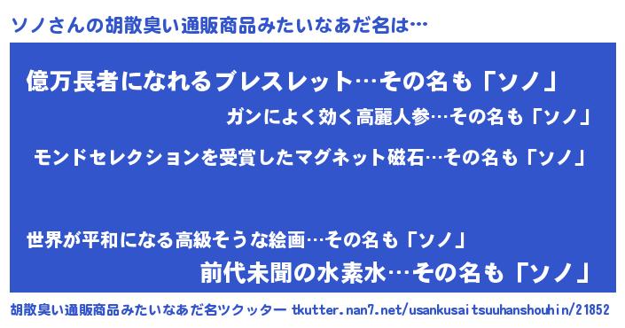 | ヘコむあだ名 | 『ソノにー』『ソノ(笑)』『レバニラ』 |