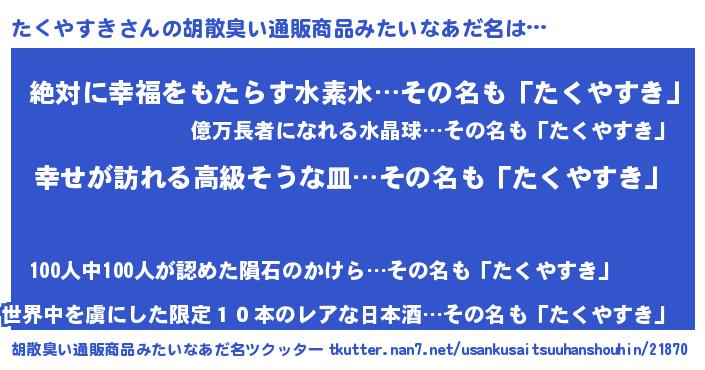 | ヘコむあだ名 | 『牛乳』『たくやすき(笑)』 |