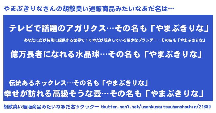 | 男性向けラノベタイトル風あだ名 | 『ヤマブキリナアートオンライン』 |