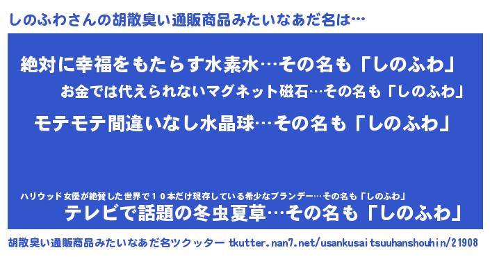 しのふわさんの胡散臭い通販商品みたいなあだ名をツクッター!