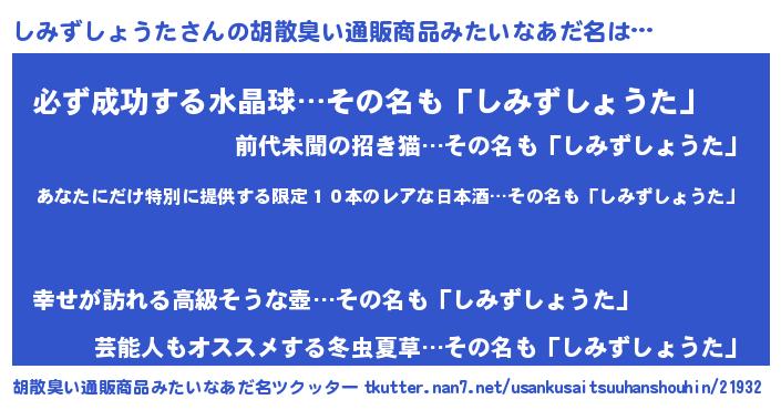 | 欧米人風あだ名 | 『ダレノガレしみずしょうた』 |