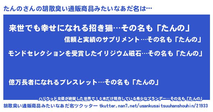 | 男性向けラノベタイトル風あだ名 | 『ノーゲーム・ノータンノ』 |
