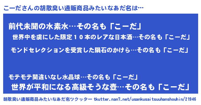 | ヘコむあだ名 | 『こーだ(震え声)』『レバニラ』 |