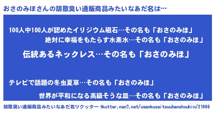 | 意味不明あだ名 | 『とにかく怪しいおさのみほ』 |