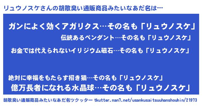 | ヒーロー風カッコイイあだ名 | 『慈愛の使者リュウノスケ』 |