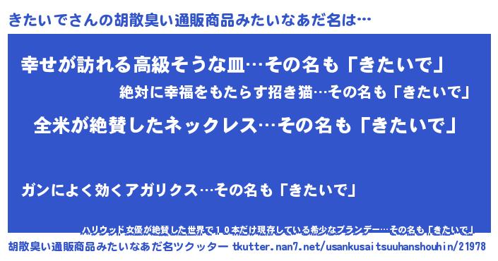 | 意味不明あだ名 | 『とにかく怪しいきたいで』 |