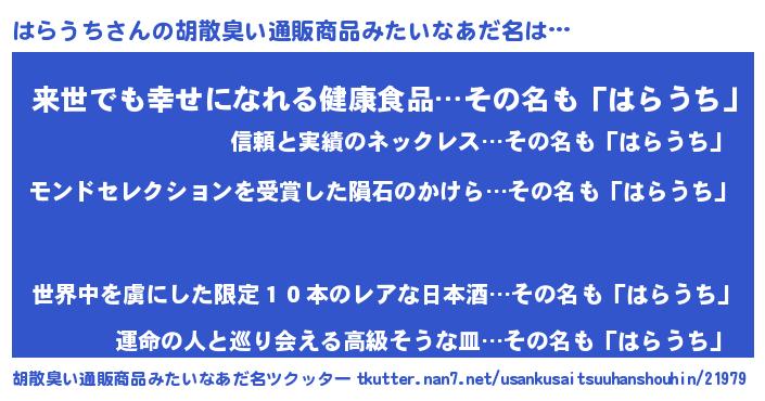 | ヘコむあだ名 | 『はらうち(遠い目)』『つくし』 |