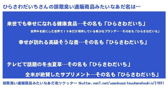 | ヘコむあだ名 | 『つくし』『ひらさわだいち(苦笑)』 |