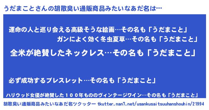| 意味不明あだ名 | 『とにかく怪しいうだまこと』 |