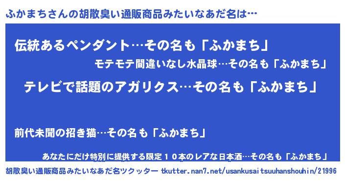 | 意味不明あだ名 | 『自称ふかまち』『ペロリンふかまち』 |