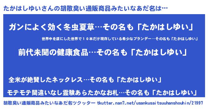 | ヘコむあだ名 | 『たかはしゆい(笑)』『たかもー』 |
