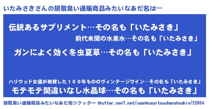 | 意味不明あだ名 | 『自称いたみさき』『ペロリンいたみさき』 |