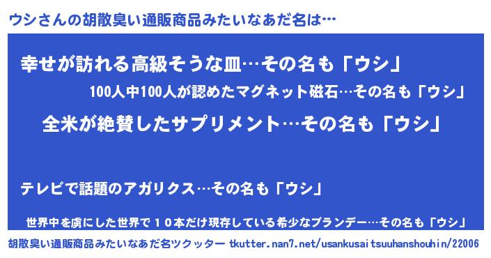 | ヘコむあだ名 | 『ウシお』『牛乳』『ウシっふぃ~』 |